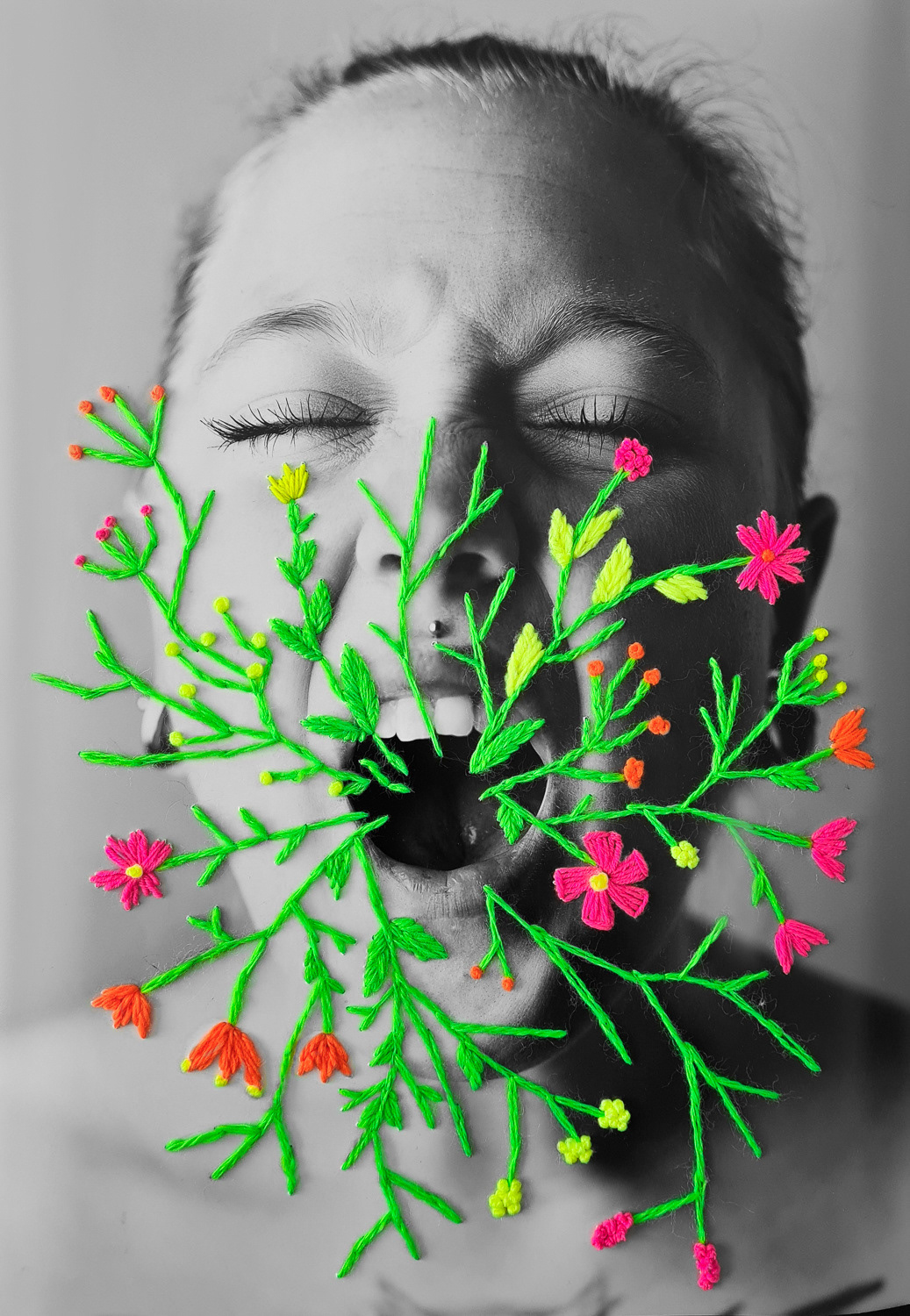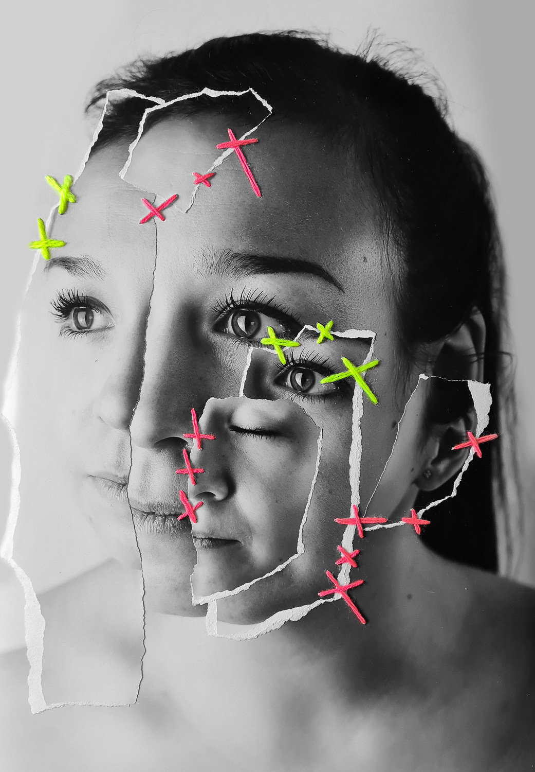 42 x 30 cm - prints, collages, embroidered with yarn